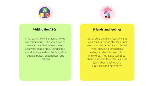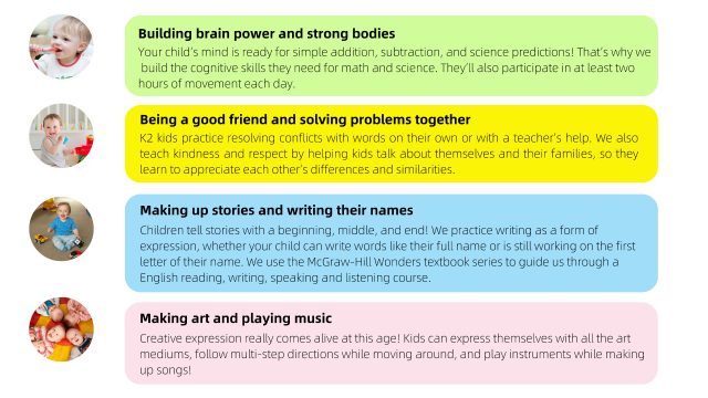 In K2, your child will deepen their knowledge in language, math, science, English, and social skills. We meet every child where they are, so children of all abilities, including English-language learners, will learn at their own pace, in their own way.
