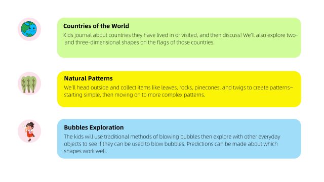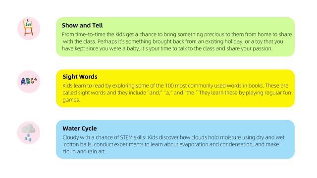 Every day, our creative teachers guide our K2 classes through fun activities that are just right for their age. Here are just a few examples!